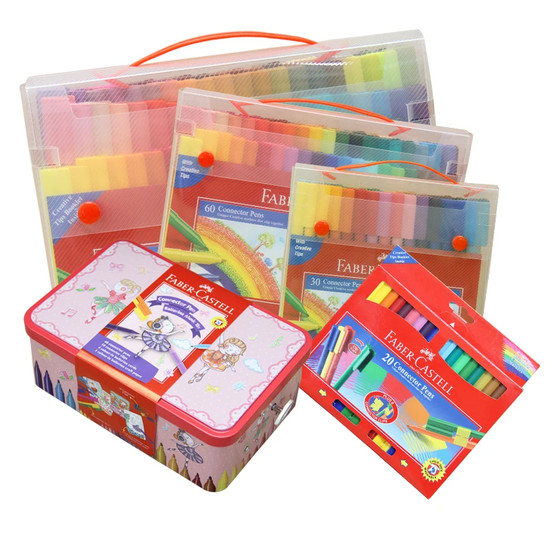 Original Faber Castell New Connector Fibre Tip Pen Case Box Pack Of 60 Connector Felt Tip Pens Art Markers Aliexpress